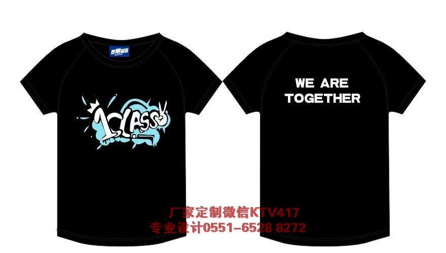 1班設(shè)計圖案,1CLASS 手指OK, 后面是WE ARE TOGETHER。黑色的衣服印刷白色的圖案,黑白配很醒目!