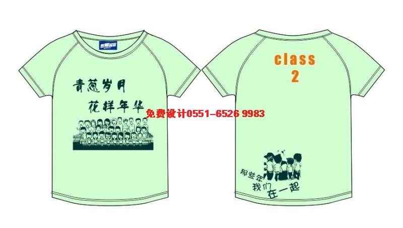 頭像班服,這款班服采用的是淡藍色T恤前面印全班成員的素描頭像,上面是青蔥歲月,花樣年華。很有集體照的感覺。后領印CLASS 2