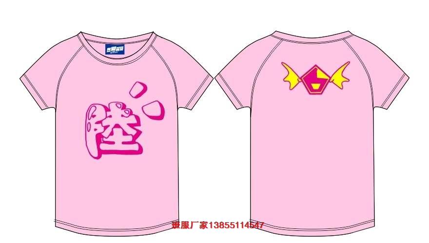六班班服圖片,六班班服圖片采用的是粉色底衫,前面圖案是玫紅色的大寫陸,后面的圖案是黃色的海星。