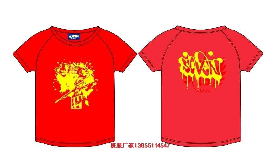 7班班服圖案,此款7班班服圖案,衣服底衫是圓領(lǐng)紅色純棉文化衫,前后面都是黃色的7班圖案,前面圖案是孫大圣金箍棒,后面的圖案是英文7。代表7班。