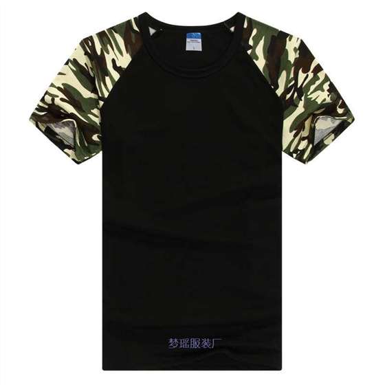 黑色底衫迷彩插肩文化衫