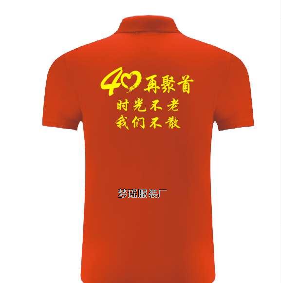 同學(xué)聚會(huì)T恤衫印字40年圖案,同學(xué)聚會(huì)T恤衫印字標(biāo)語(yǔ)口號(hào),由于是40年聚會(huì),很多人想喜慶點(diǎn),同學(xué)們一致選用紅色的翻領(lǐng)T恤衫,這款圖案是我廠給馬鞍山某個(gè)中學(xué)同學(xué)會(huì)設(shè)計(jì)的真實(shí)案例,T恤衫是左胸印刷XX中學(xué)78屆,畢業(yè)40年同學(xué)會(huì),1982-2022,T恤衫的后背是40再聚首,時(shí)光不老,我們不散。紅色的T恤衫印刷黃色的圖案,拍照很好看,發(fā)朋友圈也不錯(cuò)!事實(shí)證明,我廠設(shè)計(jì)的圖案,在聚會(huì)活動(dòng)中,添磚加瓦,為同學(xué)們聚會(huì)留念,綻放光彩!