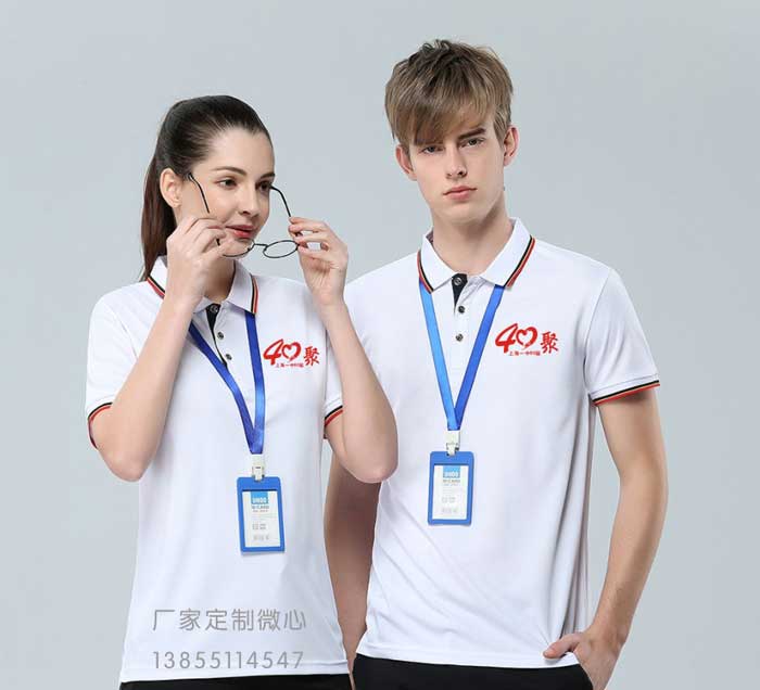 翻領(lǐng)款聚會(huì)服裝,相對(duì)于圓領(lǐng)服裝,價(jià)格高點(diǎn)。適合對(duì)服裝款式有要求的聚會(huì)班級(jí)。常用的翻領(lǐng)服裝顏色也是白色,紅色。