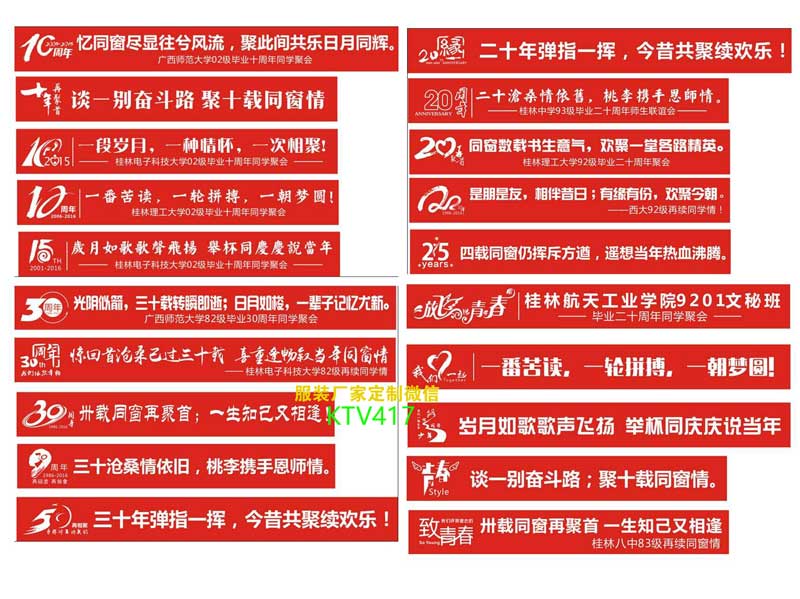 同學聚會橫幅條幅標語文字大全,同學會橫幅打什么字好看?聚會橫幅文字案例大全,夢瑤服裝,成立12年,擁有上千個班級的服裝制作經(jīng)驗,現(xiàn)展示部分同學會橫幅文字。