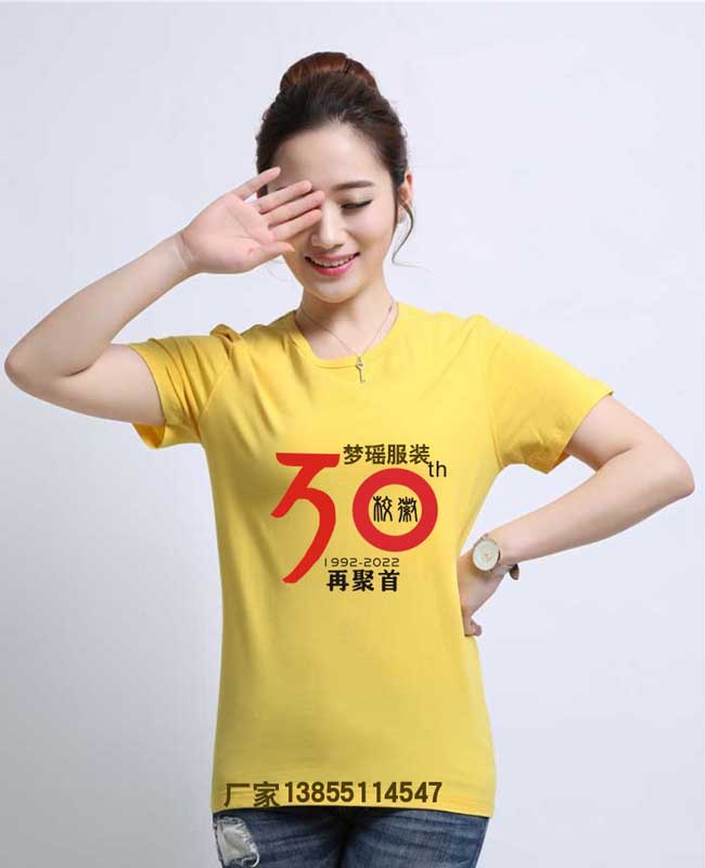 圓領(lǐng)的同學(xué)聚會衣服,通常稱做文化衫,圓領(lǐng)的純棉短袖,摸著純棉,穿著吸汗透氣,不粘皮。對于圓領(lǐng)同學(xué)聚會衣服來說:設(shè)計思路為任意發(fā)揮,自由想象,印字面積可大些,也可前后都印滿字。通常衣服前面印刷聚會年限,比如畢業(yè)30年,相聚三十年等。