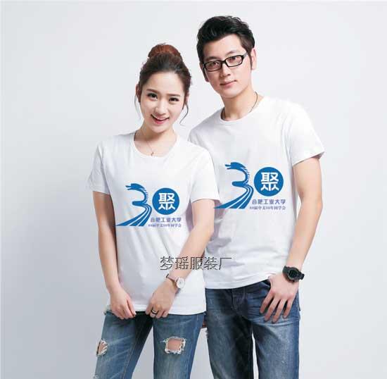 這款30年同學(xué)會(huì)文化衫圖案,采用的是圓領(lǐng)短袖純白文化衫,圖案采用藍(lán)色的印刷,圖案采用龍為變形元素,使龍變形為數(shù)字3,右邊圖案為圓形,代表0,合起來(lái)就是數(shù)字30,設(shè)計(jì)的很巧妙,右邊的圓形鏤空出漢字“聚”,下面是合肥工業(yè)大學(xué),最下面是班級(jí)名稱XX屆XX專業(yè)30年同學(xué)會(huì),圖案設(shè)計(jì)具有流線型,線條粗細(xì)剛好,文化衫圖案整體呈現(xiàn)藍(lán)色,科技感十足。使文化衫簡(jiǎn)而不俗。