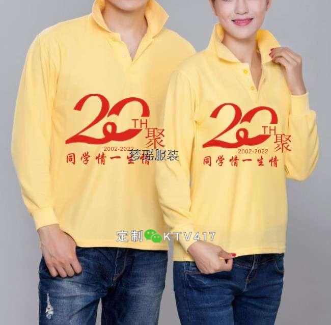 同學聚會文化衫圖案20周年分為長袖文化衫和短袖文化衫,不同的文化衫顏色和文化衫款式,圖案設(shè)計是不一樣的。翻領(lǐng)短袖的文化衫。通常20周年印制的圖案都不同,翻領(lǐng)印制的圖案大致小點,精致點。圓領(lǐng)的聚會文化衫,圖案可以印的大寫,也可以前后印制圖案。